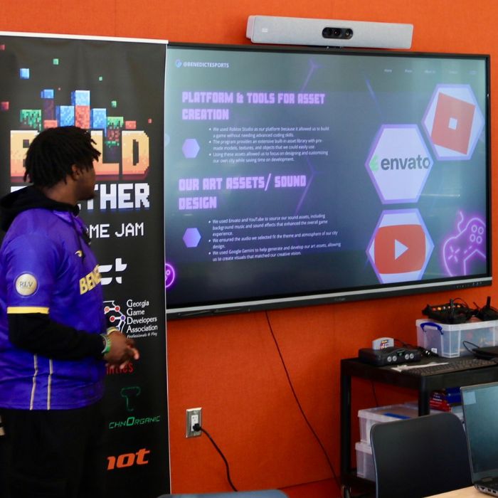 The HBCU Game Jam is a weekend hackathon where students compete to build their own video games and win industry-sponsored prizes! This beginner-friendly competition introduces students to the game development process. The HBCU Game Jam lasted 24 hours and included a Game Development Day Conference. As a 24-hour competition held at the Spelman Center for Innovation and the Arts, participants spent the full duration on-site, many pulling an all-nighter and bringing sleeping bags.